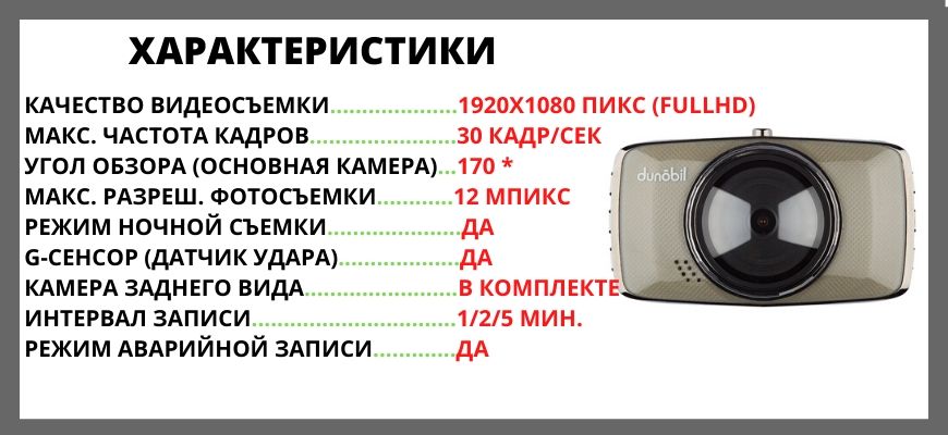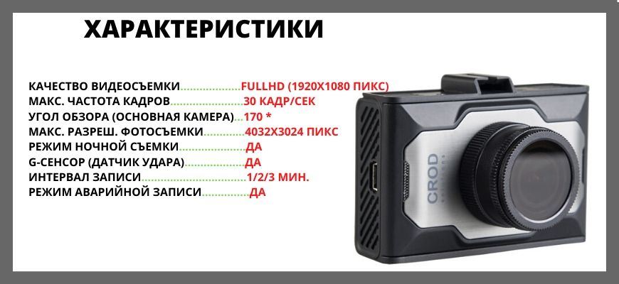 - опции — G-сенсор, детектор движения и GPS, ночной режим, WDR;