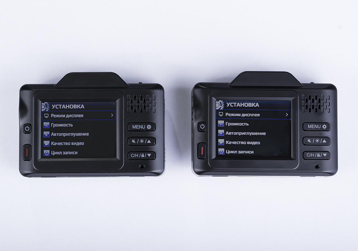 Устройства гораздо компактнее, чем ожидаешь от регистратора-детектора. Как уже я говорил, они сравнимы по размеру с обычными видеорегами – и их вполне можно спрятать за зеркало заднего вида. Хотя смысла в этом нет, ведь экран нужен для отслеживания предупреждений о радарах. Вообще на первый взгляд и не скажешь, что в камере спрятан радар-детектор. О его наличии говорит разве что неприметное окошко в левом верхнем углу лицевой панели, предназначенное для обнаружения лазерных комплексов.