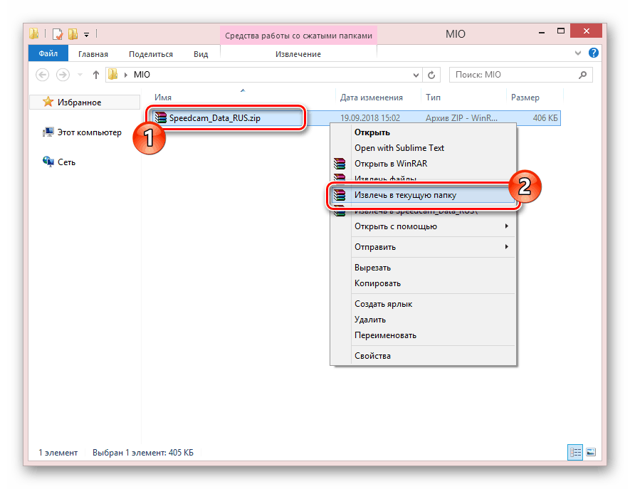 - Так как база данных видеофиксации поставляется в ZIP-архиве, его необходимо распаковать любым удобным архиватором.