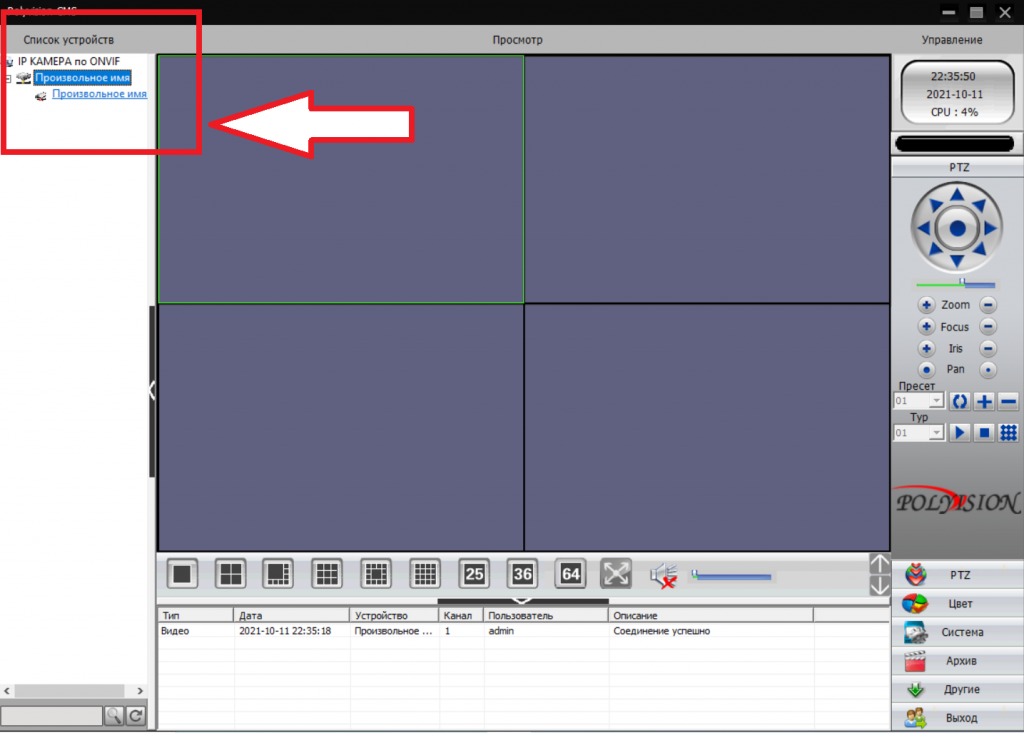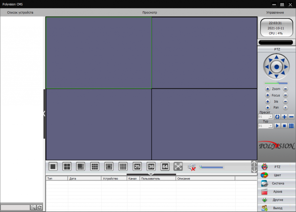 - поддержка всех IP видеокамер Polyvision (кроме PX-M5-VXX-IP);
